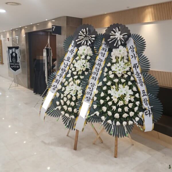 화환이 일정 수 이상 들어오면 입구에서 직원 확인 후 리본만 잘라 벽면에 부착하는 경우가 있습니다.